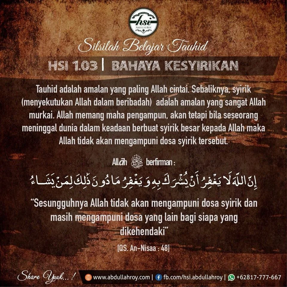 Halaqah yang ke-3 dari silsilah ilmiyyah belajar Tauhid adalah tentang Bahaya Kesyirikan