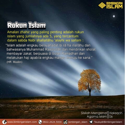 Syariat islam yang dibawa oleh Nabi kita ﷺ terdiri dari amalan yang dhahir dan batin. Amalan dhahir yang paling penting adalah rukun islam yang jumlahnya ada lima yang tercantum dalam sabda Nabi ﷺ,