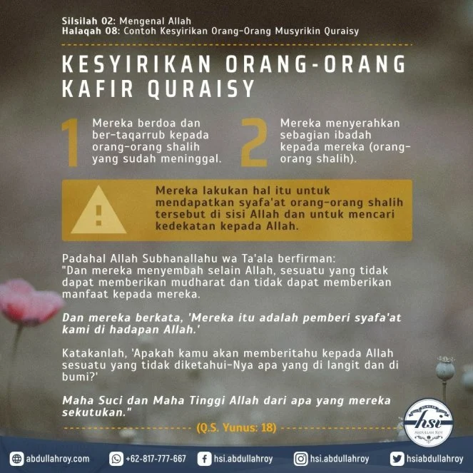 Halaqah yang ke-8 dari Silsilah Mengenal Allāh adalah tentang “Contoh Kesyirikan Orang-Orang Musyrikin Quraisy”.