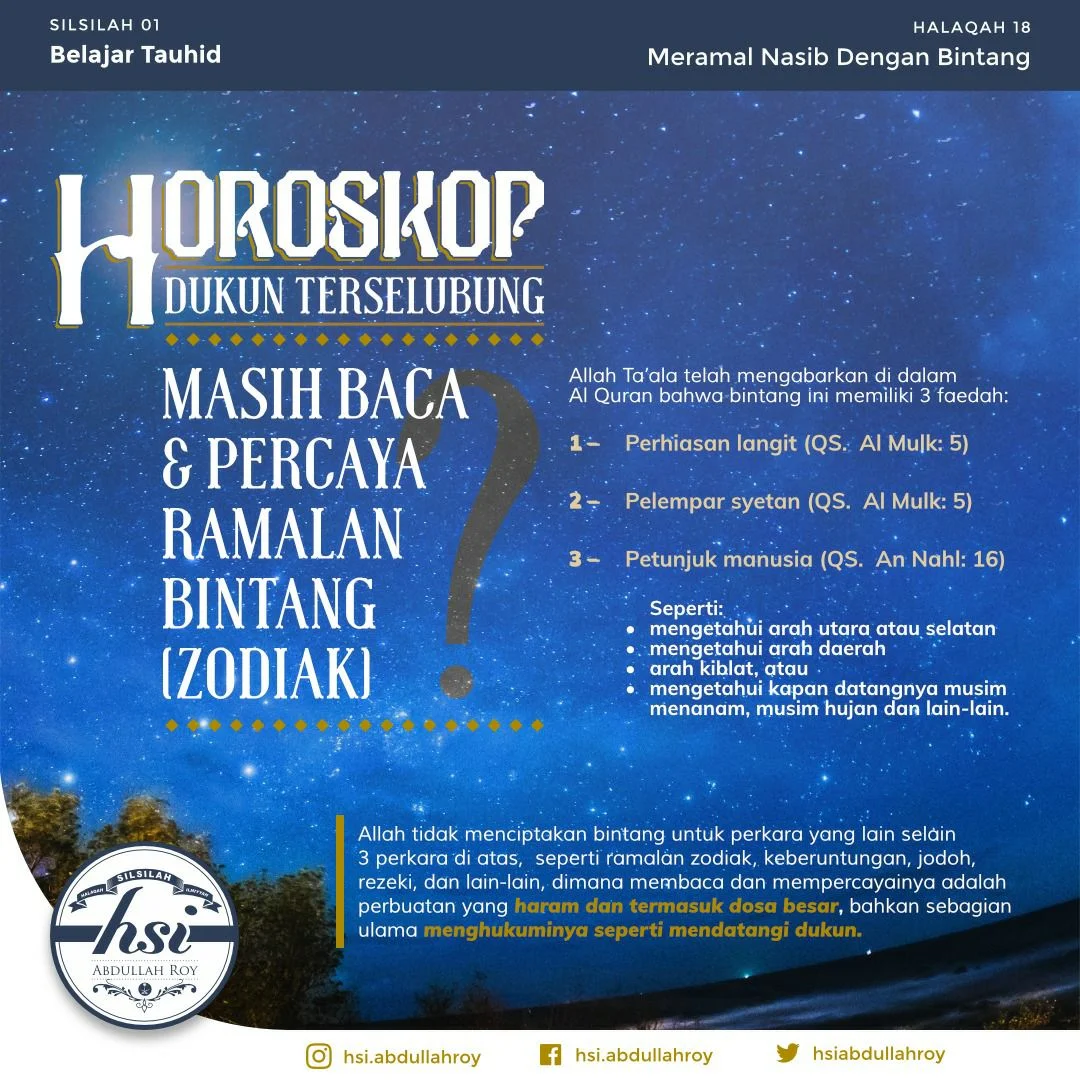 Halaqah yang ke-18 dari Silsilah Belajar Tauhid adalah tentang “Meramal Nasib Dengan Bintang”.