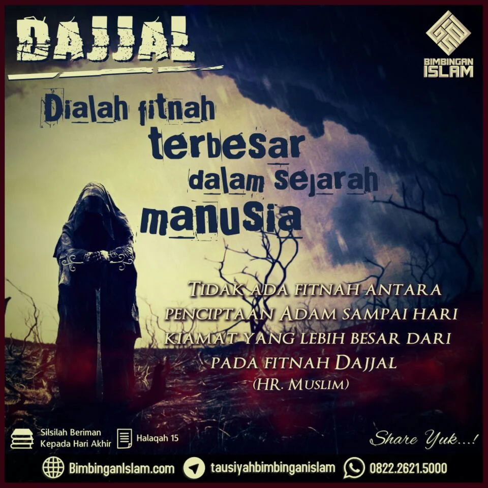 Tidak ada fitnah antara penciptaan Adam sampai hari kiamat yang lebih besar dari pada fitnah Dajjal (HR. Muslim).