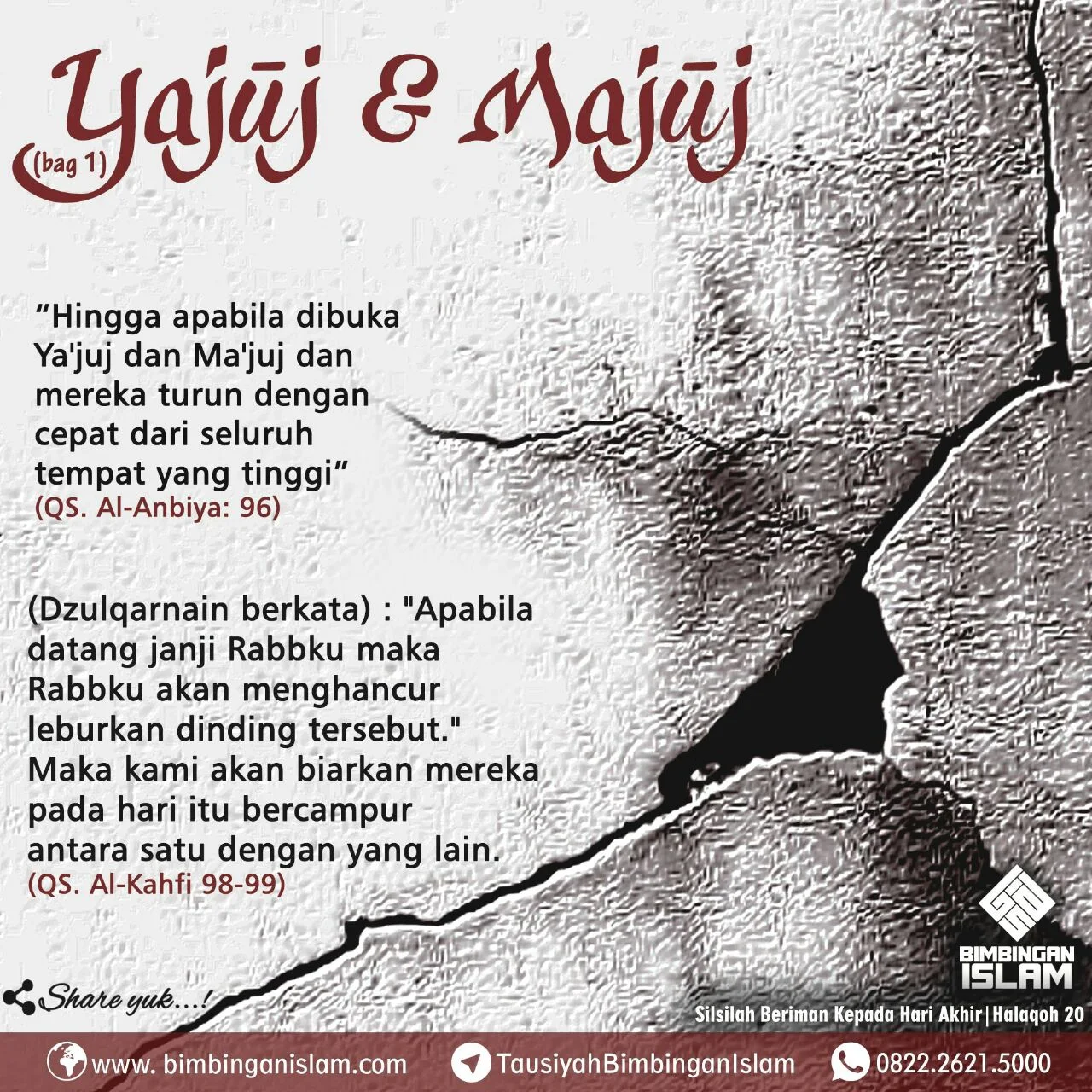 Halaqah yang ke-20 dari Silsilah Beriman Kepada Hari Akhir adalah tentang “Ya’juj dan Ma’juj Bagian 1”