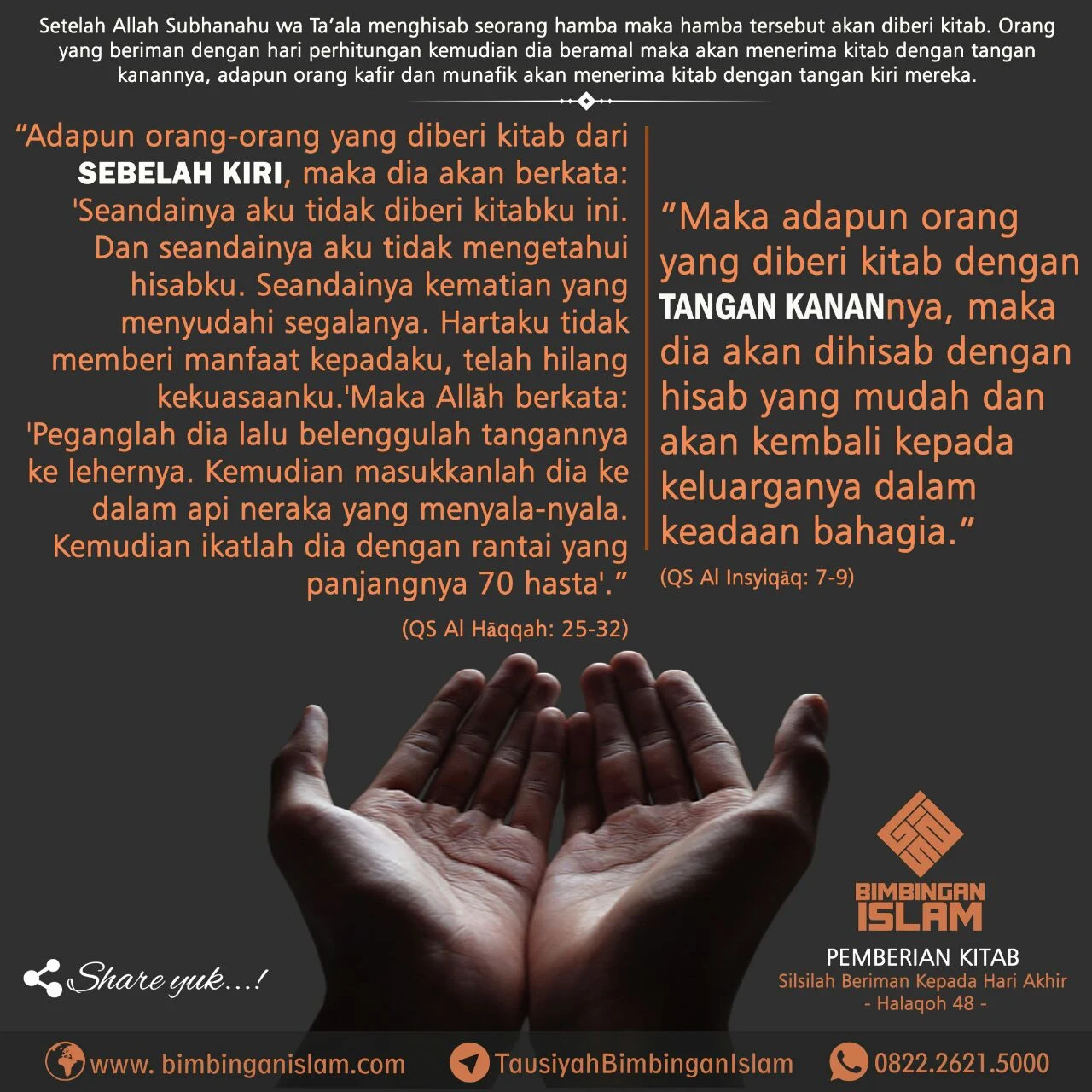 Orang yang berimān dengan hisāb dan hari perhitungan dan dia beramal maka dia akan menerima kitāb yang berisi hasanah dengan tangan kanannya.