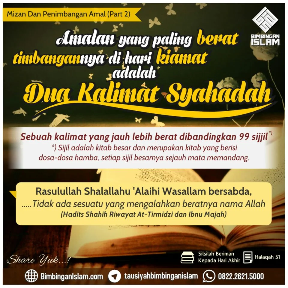 Amalan yang paling berat di dalam timbangan pada hari kiamat adalah dua kalimat syahadah.
